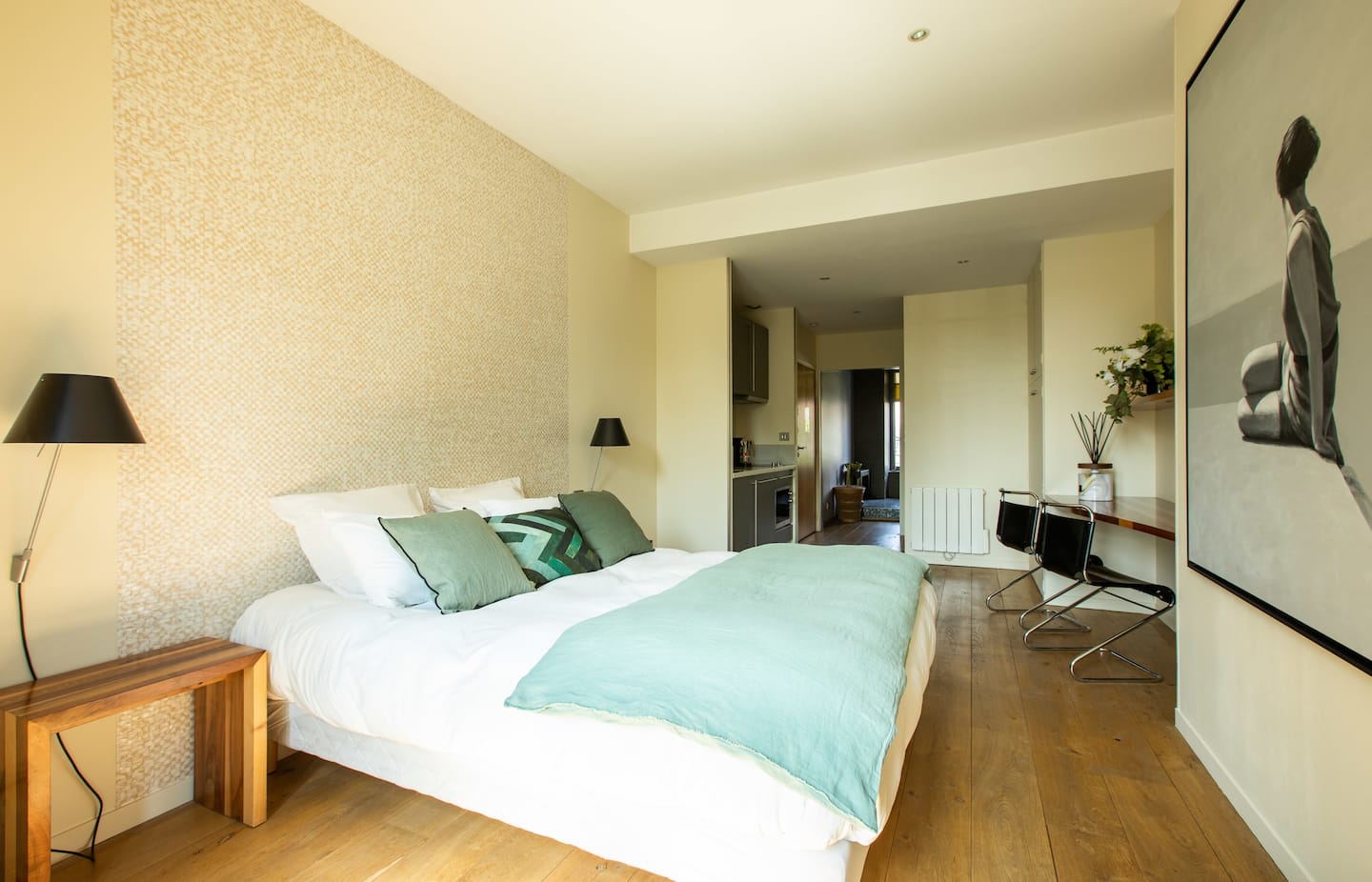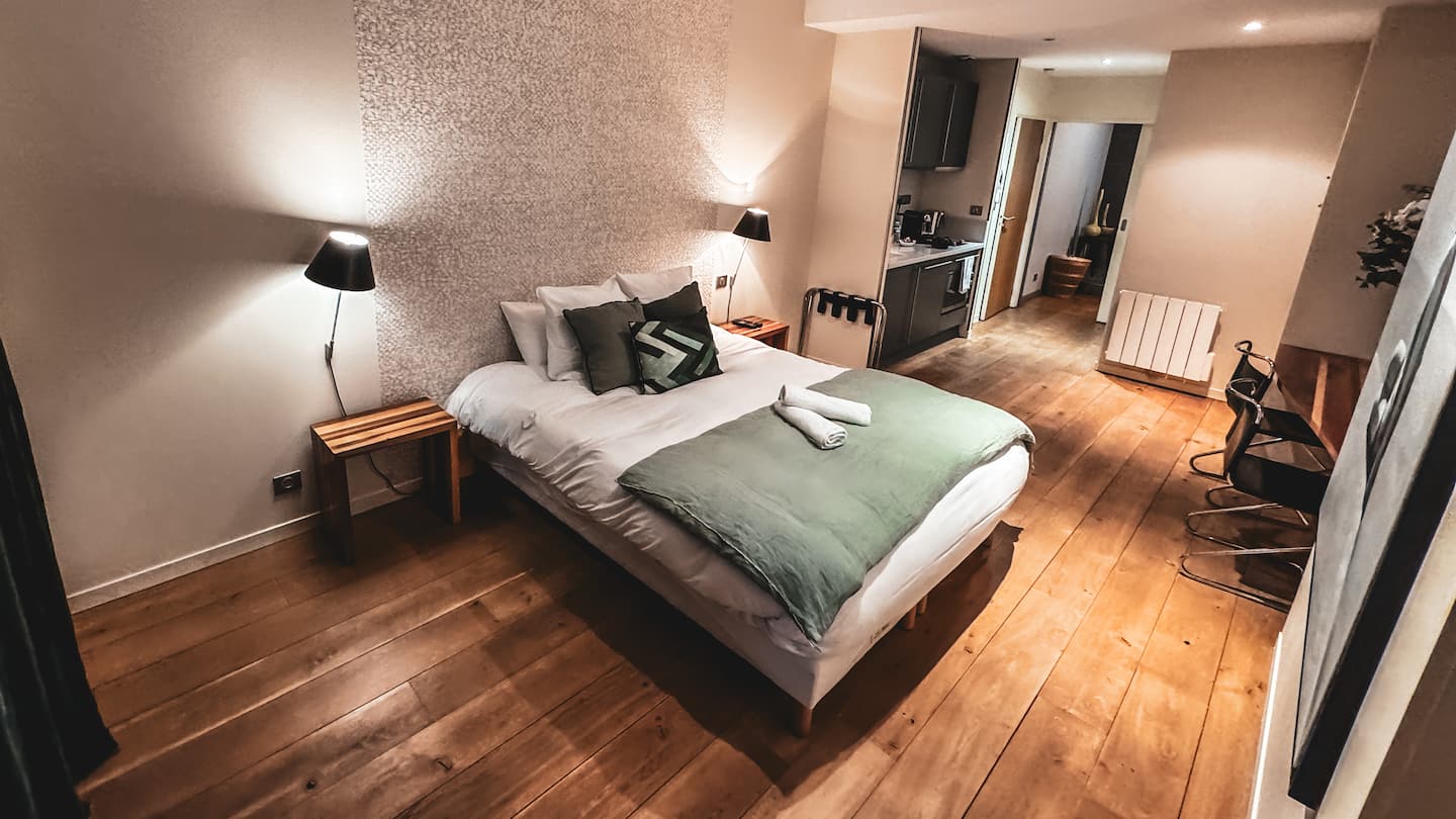 Découvrez La Nacre, une suite d’une élégance rare à Limoges. Un décor somptueux avec des notes colorées et végétales qui viennent pigmenter l’atmosphère de relaxation. Imprégnez-vous de cet univers de repos durant votre séjour et plongez vous dans un univers élégant pour une aventure limougeaude.