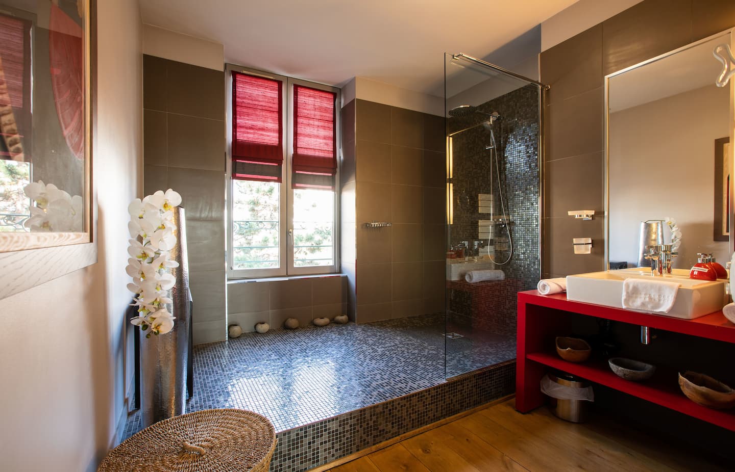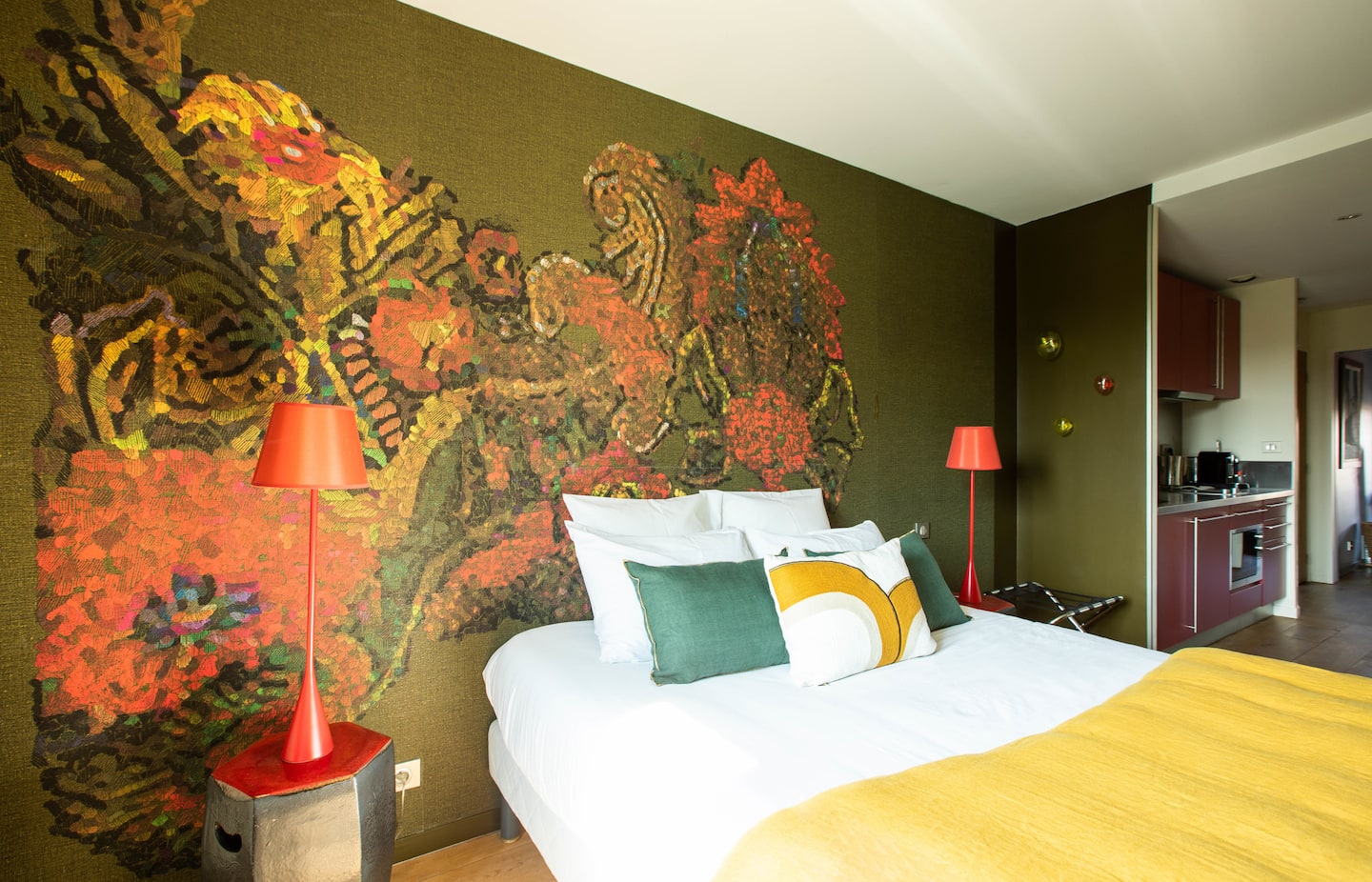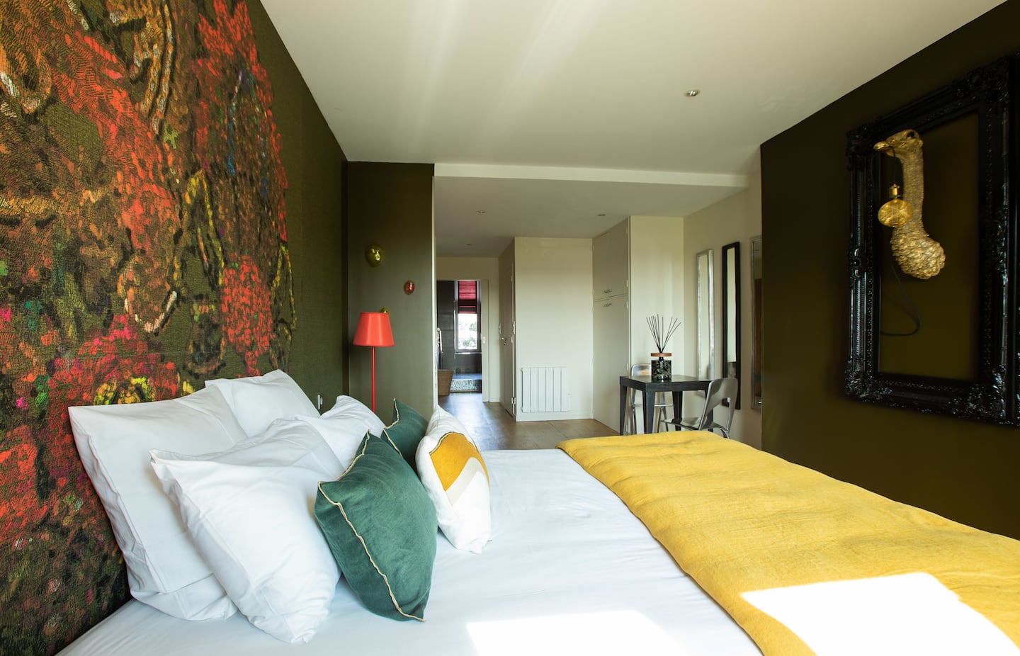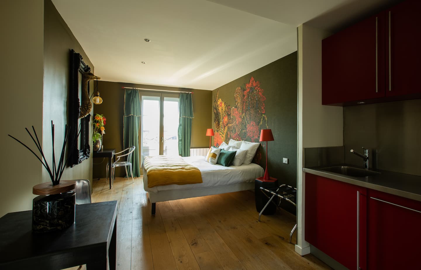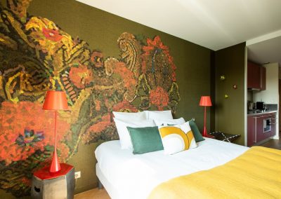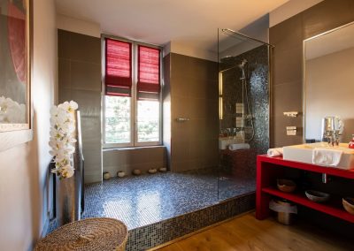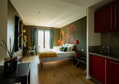 Découvrez La Rubis, une suite d’une élégance rare à Limoges. Jouant avec des fils d’argent, des jeux de lumières, et des meubles au design courbé, cet appart’hôtel caractérisé par des éclats de rouge vous transporte dans un havre contemporain.